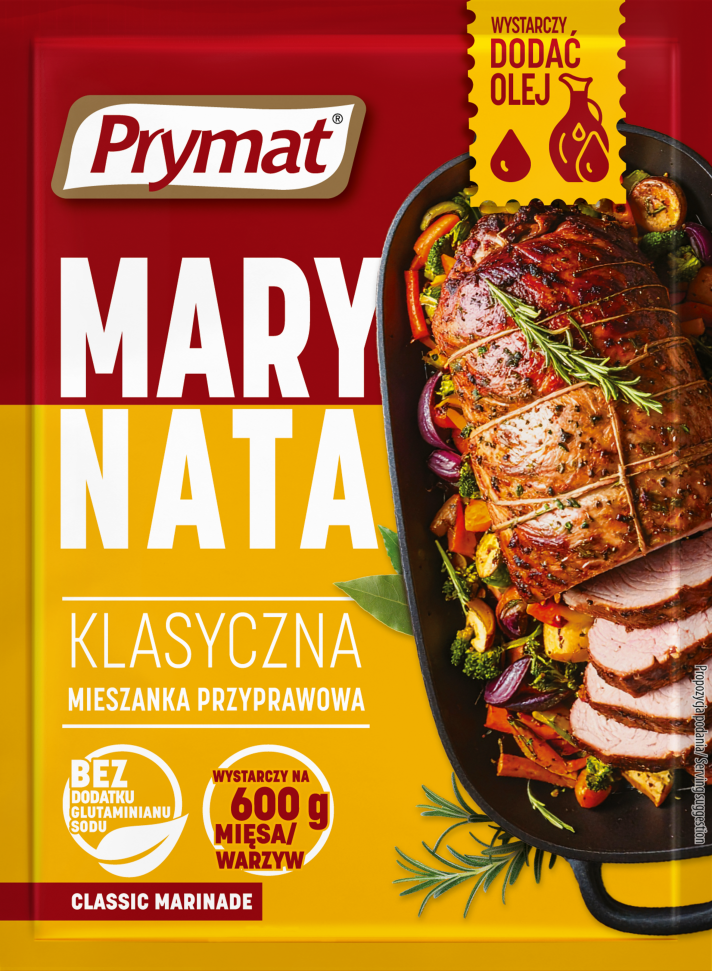 Marynata w płynie szlachecka Prymat to wygodny sposób na wzbogacenie smaku i aromatu potraw mięsnych, dzięki płynnej konsystencji marynowanie staje się wyjątkowo proste. Marynata w płynie szlachecka Prymat to oryginalna kompozycja szlachetnych ziół i pachnących przypraw. Inspirowana jest staropolską tradycją kulinarną. Sprawia, że mięso uzyskuje wyjątkowy smak i aromat tradycyjnego, szlacheckiego mięsiwa, pozostając jednocześnie kruche i soczyste.