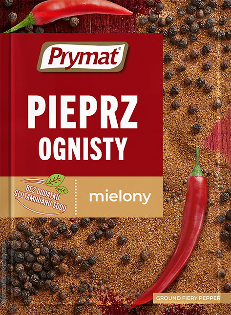 Pieprz ognisty mielony Prymat to wyjątkowa mieszanka wzbogacona o pikantne chili, które sprawia, że przyprawa jest bardziej ostra. Aromatyczny zapach pieprzu ognistego dobrze komponuje się z mięsami, serami i daniami warzywnymi.