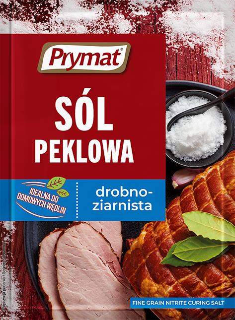 Sól peklowa drobnoziarnista Prymat nadaje mięsom soczystość oraz apetyczny, różowy kolor. Jest niezastąpiona do peklowania, wędzenia i konserwowania mięs, zwłaszcza wieprzowiny i dziczyzny. Dzięki peklowaniu mięso na dłużej zachowuje świeżość, odpowiednią barwę i konsystencję. Sól peklową drobnoziarnistą Prymat polecamy także do przygotowania doskonałych marynat. Jest to więc produkt niezbędny dla każdego miłośnika perfekcyjnie przygotowanych mięs.